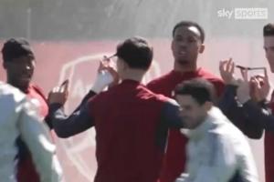 抽象程度堪比AI🤣阿森纳训练4人一组,两两手抵钢笔带球踢进桶