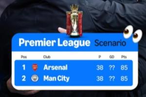 转播方亚马逊列出一种潜在的英超争冠形势:若曼城接下来在英超全胜(包括主场对枪手的直接对话),而阿森纳赢得除直接对话的另外五轮比赛,双方在全部比赛结束后的比分均为85分,需要比较净胜球才能决定最终冠军归属。