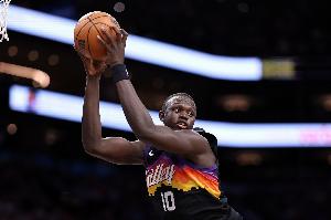 上半场比赛,太阳10号秀马卢阿奇替补上场表现很不错,篮板拼抢很亮眼,他出战8分21秒,2中1,罚球4中2拿到4分10篮板(5前场篮板)1盖帽,正负值+10。