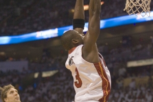 2005-06赛季季后赛,韦德为热火队出场23次,场均41.7分钟,得到28.4分5.9篮板5.7助攻1.1封盖2.2抢断,命中率49.7%,三分命中率37.8%,罚球命中率80.8%。(该赛季季后赛打到总决赛并夺冠)